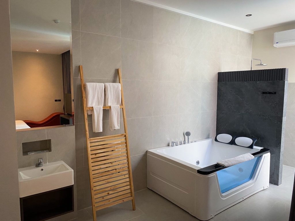 ห้องวีไอพี มีอ่าง Jacuzzi พร้อมสระว่ายน้ำสุด Private ตกแต่งสไตล์ Modern พร้อมมินิบาร์ และสิ่งอำนวยความสะดวกครบครัน